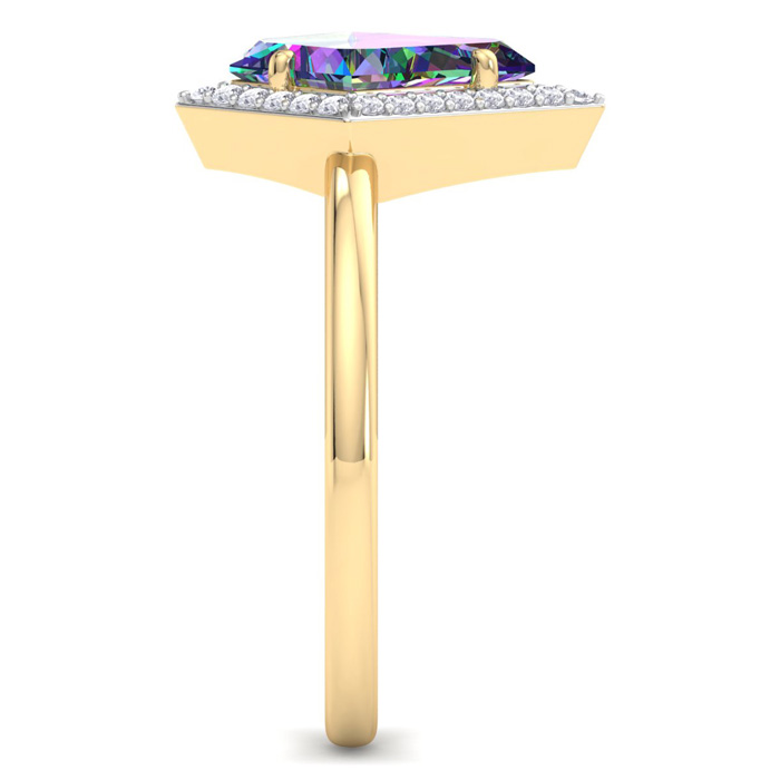 1-3/4 Carat Kite Shape Mystic Topaz ring With Diamond Halo In 14 Karat Yellow Gold