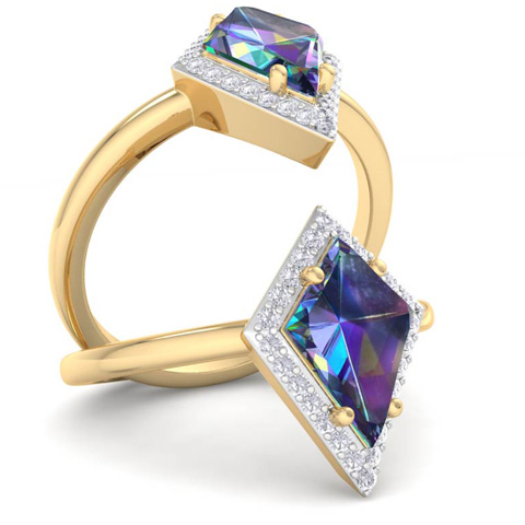 1-3/4 Carat Kite Shape Mystic Topaz ring With Diamond Halo In 14 Karat Yellow Gold