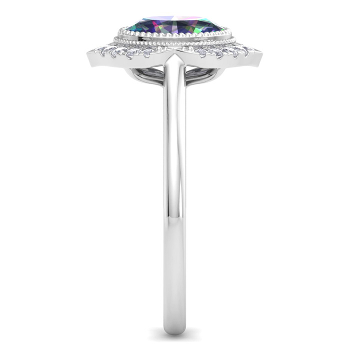 Retrograde Birthstones™ 1-3/4 Carat Oval Shape Mystic Topaz Ring and Diamond Halo In 14 Karat White Gold