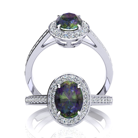 1-3/4 Carat Oval Shape Mystic Topaz Ring With Diamond Halo In 14 Karat White Gold