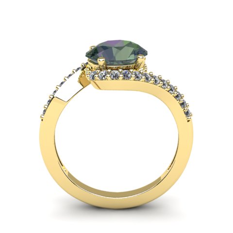 1-3/4 Carat Oval Shape Mystic Topaz Ring With Swirling Diamond Design In 14 Karat Yellow Gold