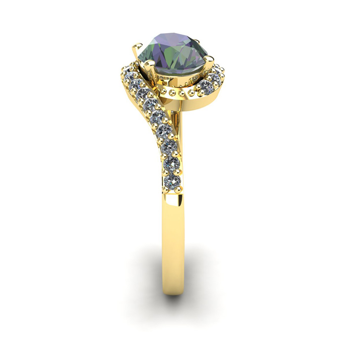 1-3/4 Carat Oval Shape Mystic Topaz Ring With Swirling Diamond Design In 14 Karat Yellow Gold