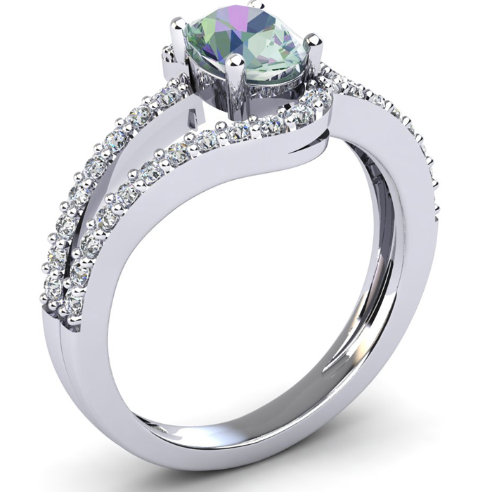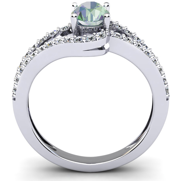 1.40 Carat Oval Shape Mystic Topaz and Fancy Diamond Ring In Sterling Silver