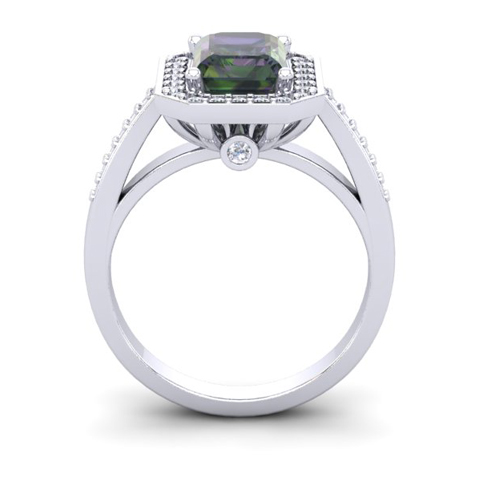 1 Carat Octagon Shape Mystic Topaz Ring With Diamond Halo In 14 Karat White Gold