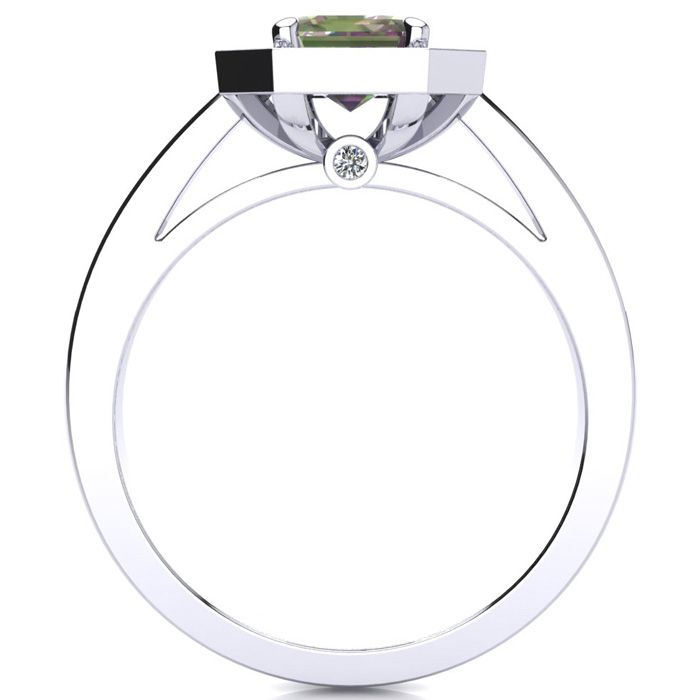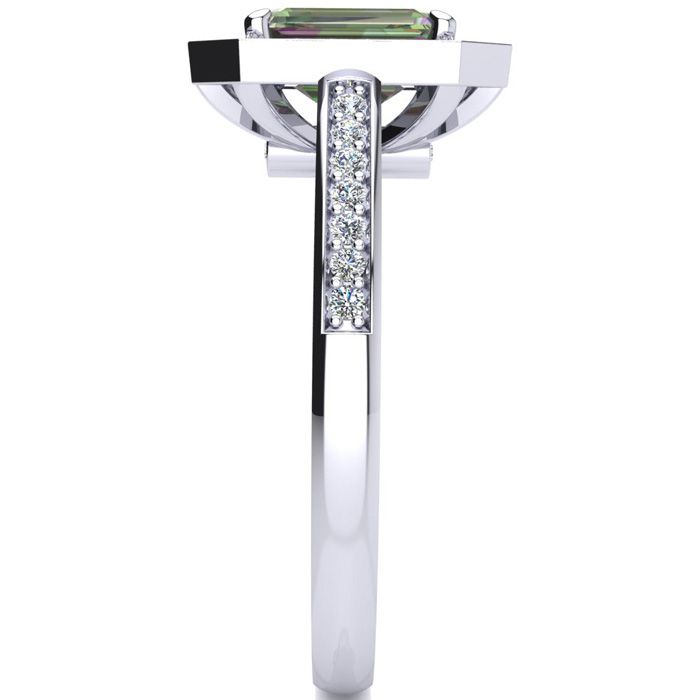 1 Carat Octagon Shape Mystic Topaz Ring With Diamond Halo In 14 Karat White Gold
