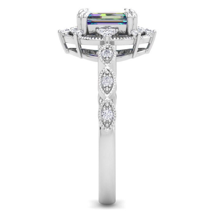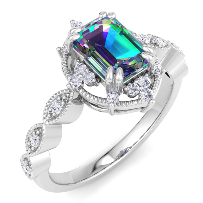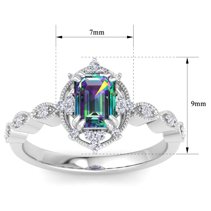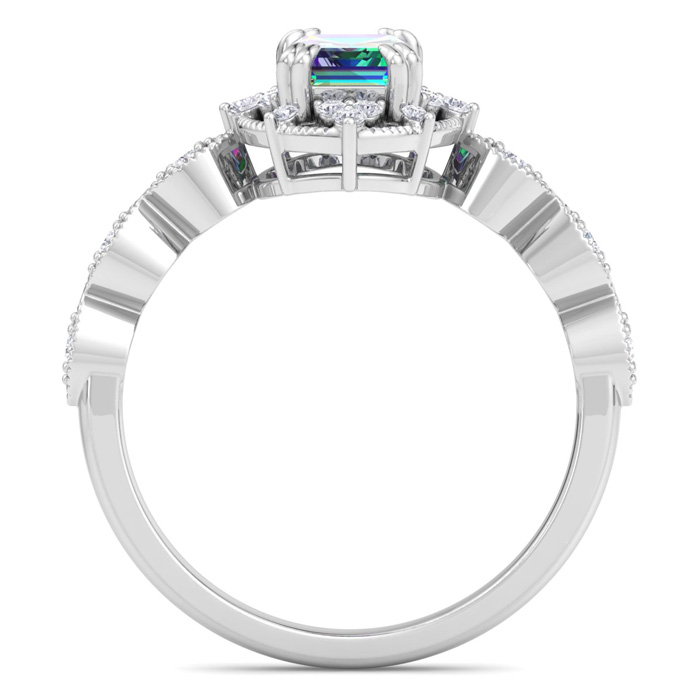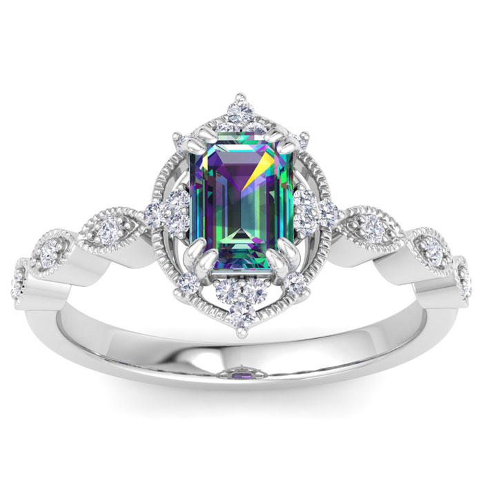 1 Carat Octagon Shape Mystic Topaz Ring With Diamond Halo In 14 Karat White Gold