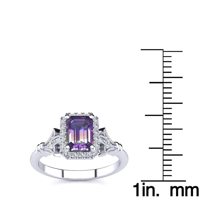 Retrograde Birthstones™ 1 Carat Octagon Shape Mystic Topaz Ring With Diamond Halo In 14 Karat White Gold