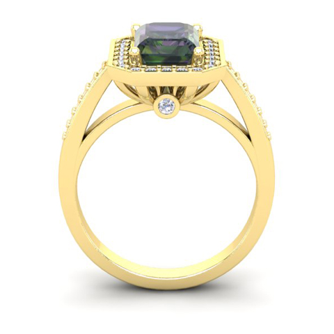 1 Carat Octagon Shape Mystic Topaz Ring With Diamond Halo In 14 Karat Yellow Gold