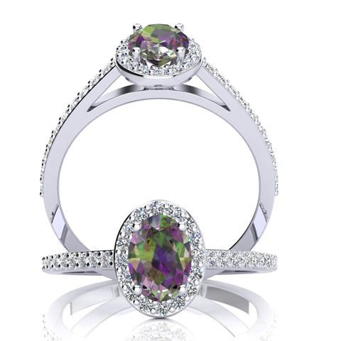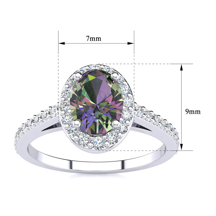 1 Carat Oval Shape Mystic Topaz and Halo Diamond Ring In Sterling Silver