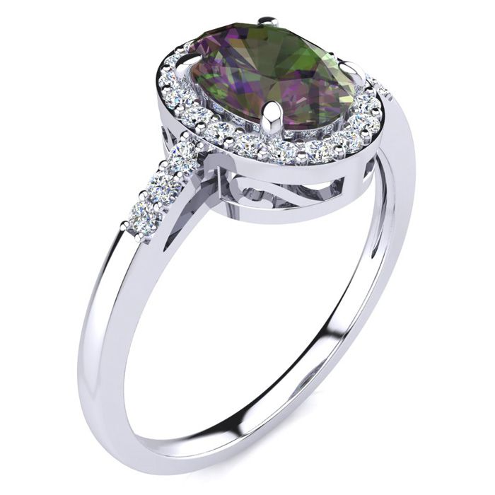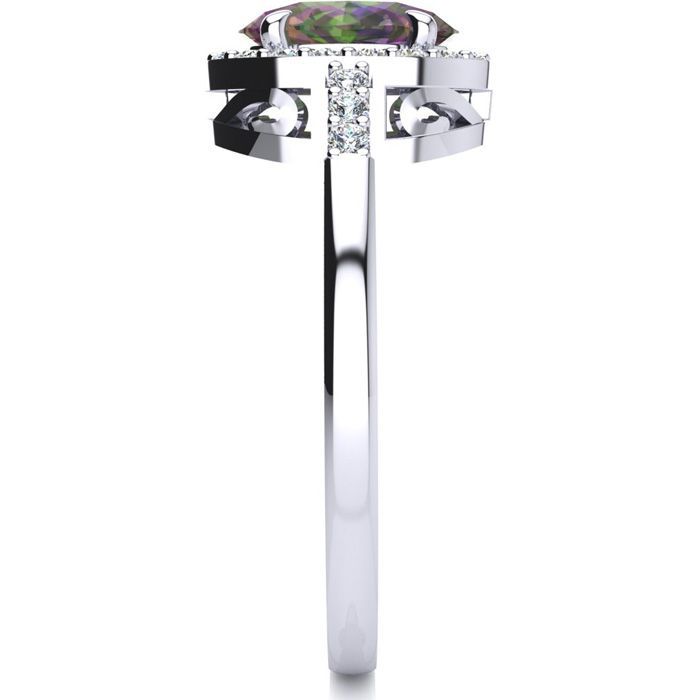 1 Carat Oval Shape Mystic Topaz and Halo Diamond Ring In Sterling Silver