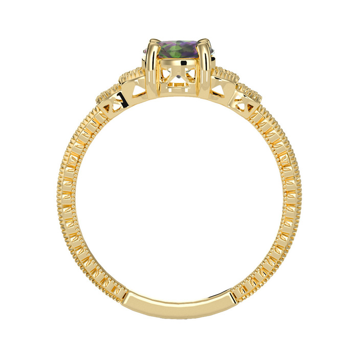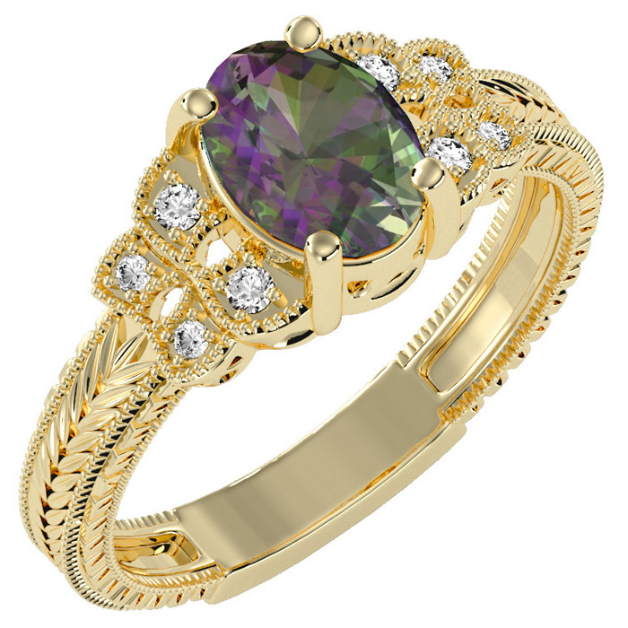1 Carat Oval Shape Mystic Topaz Ring and Diamonds In 10 Karat Yellow Gold