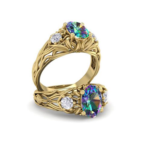 1 Carat Oval Shape Mystic Topaz Ring and Diamonds In 14 Karat Yellow Gold