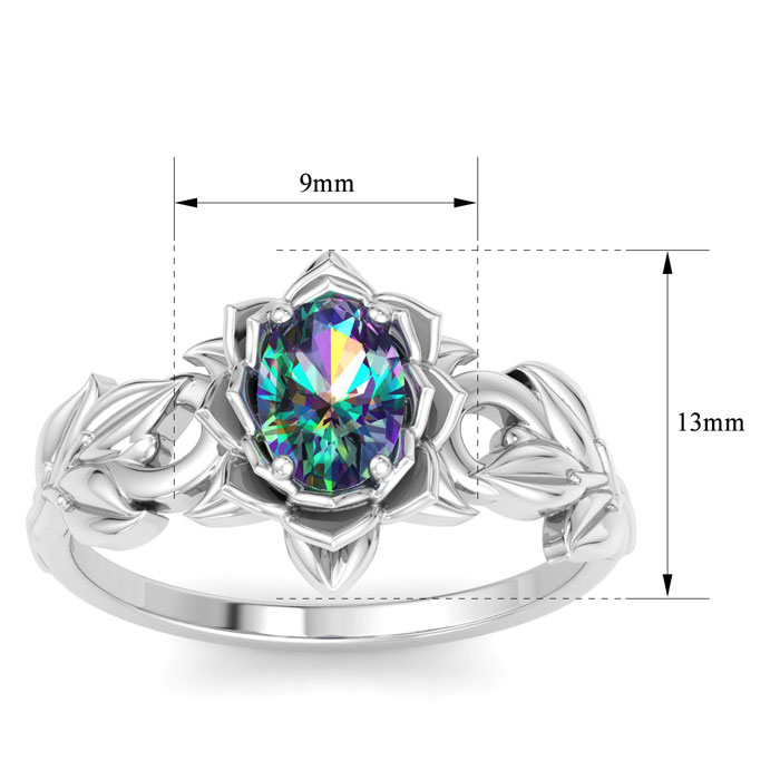 Retrograde Birthstones™ 1 Carat Oval Shape Mystic Topaz Ring In 14 Karat White Gold