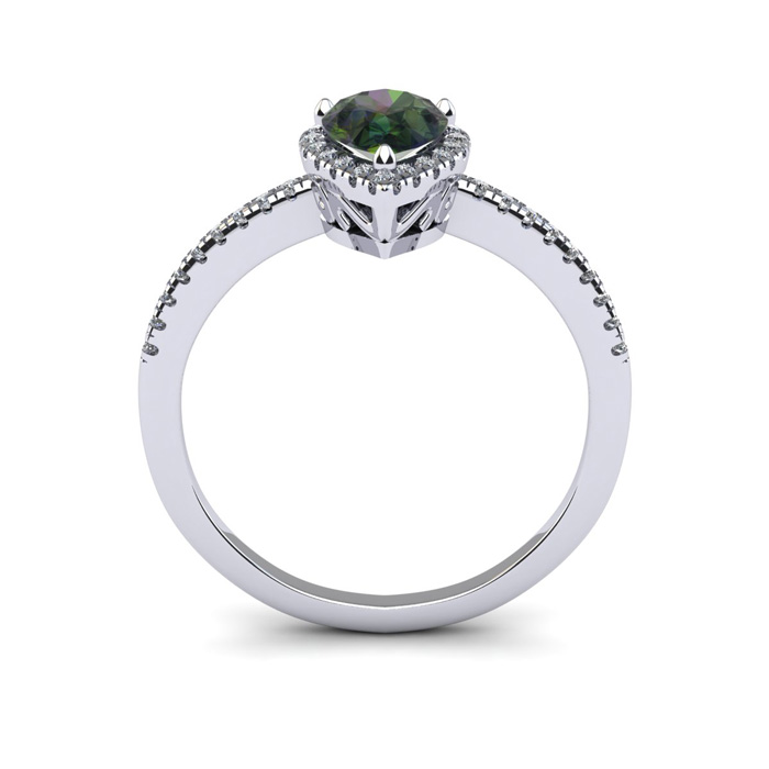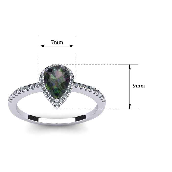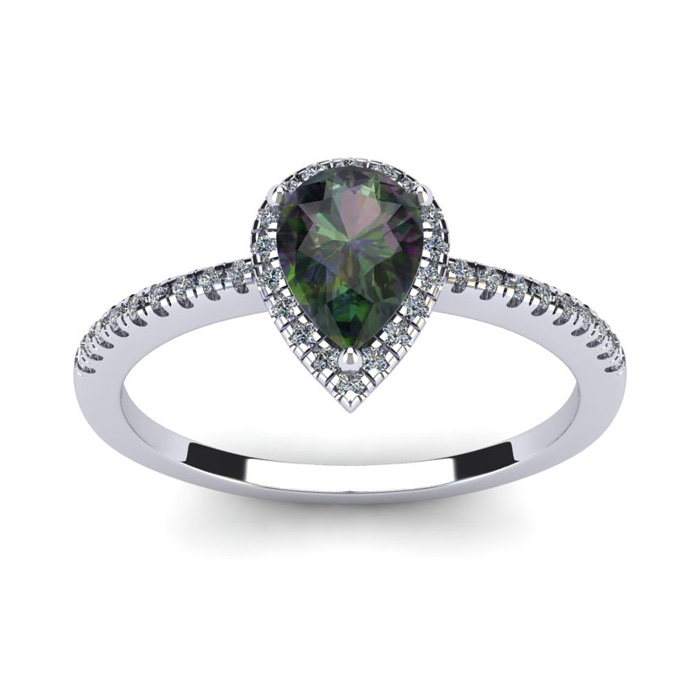 1 Carat Pear Shape Mystic Topaz and Halo Diamond Ring In Sterling Silver