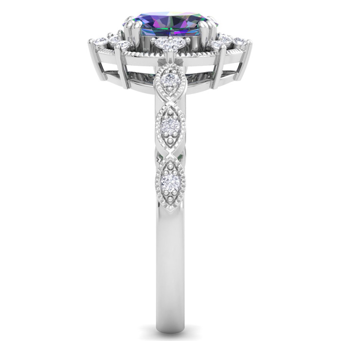 1 Carat Round Shape Mystic Topaz Ring With Diamond Halo In 14 Karat White Gold