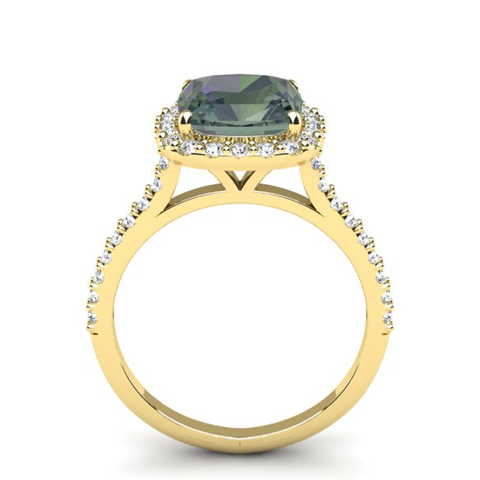 2-1/2 Carat Cushion Shape Mystic Topaz Ring With Diamond Halo In 14 Karat Yellow Gold