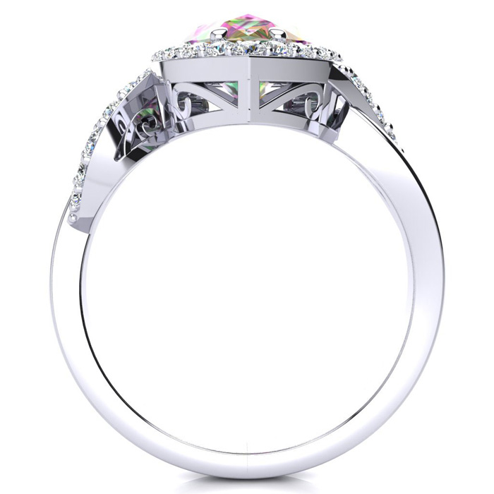 Retrograde Birthstones™ 2-1/2ct Pear Shape Mystic Topaz Ring With Diamond Halo In 14 Karat White Gold