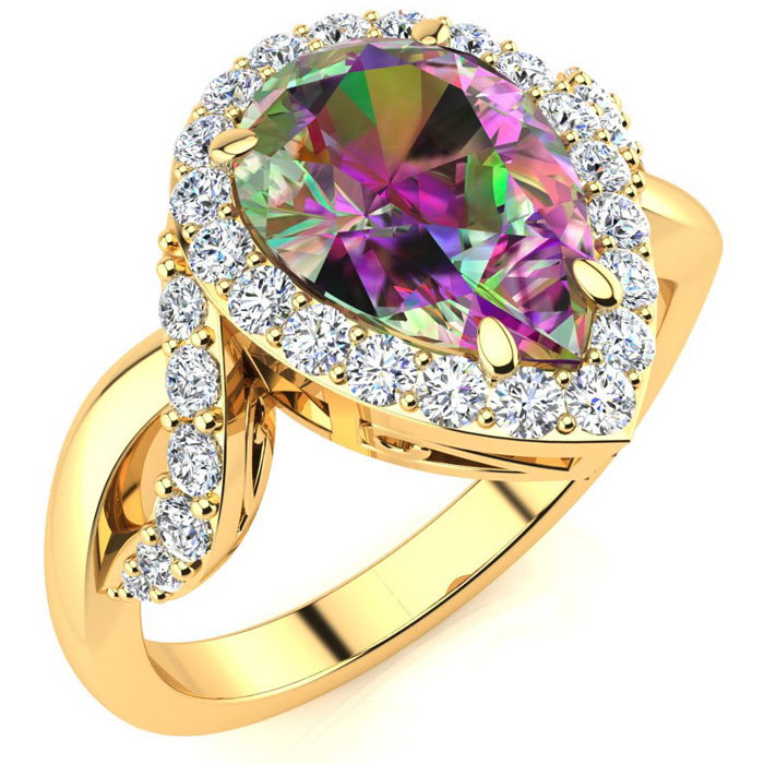 2-1/2ct Pear Shape Mystic Topaz Ring With Diamond Halo In 14 Karat Yellow Gold