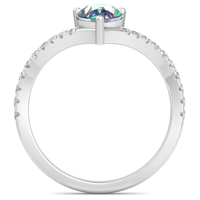 2-1/3 Carat Pear Shape Mystic Topaz Ring and Diamonds In 14 Karat White Gold