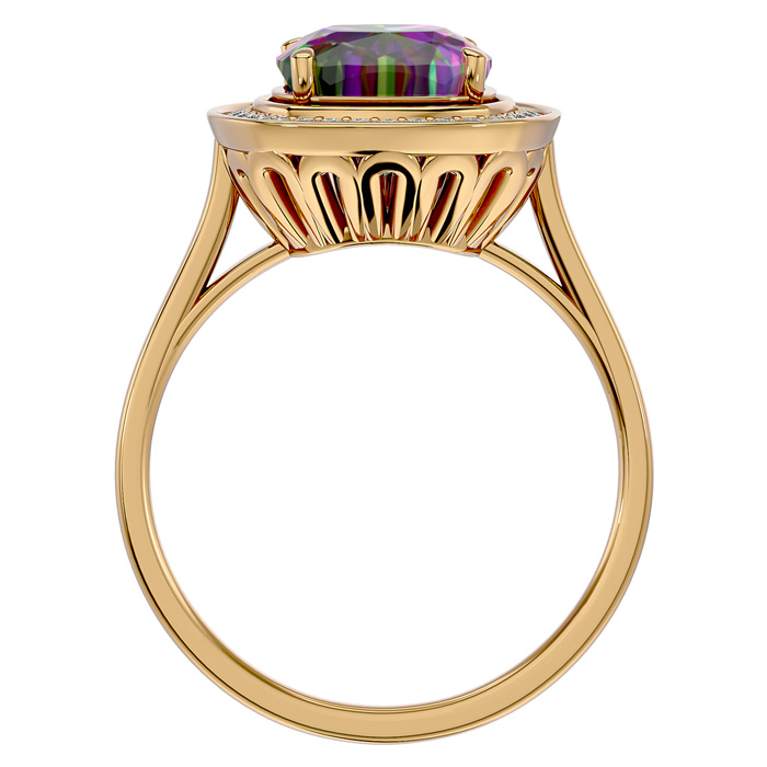 2-1/4 Carat Cushion Shape Mystic Topaz Ring With Diamond Halo In 14 Karat Yellow Gold