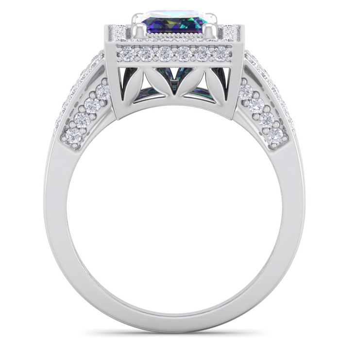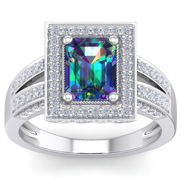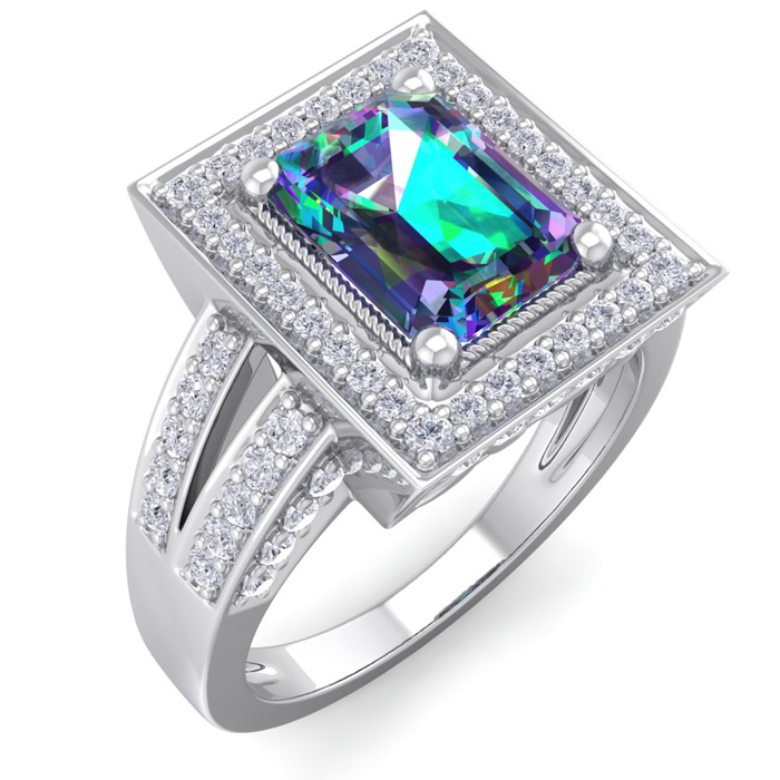 2-1/5 Carat Octagon Shape Mystic Topaz Ring With Halo Diamond In 14 Karat White Gold