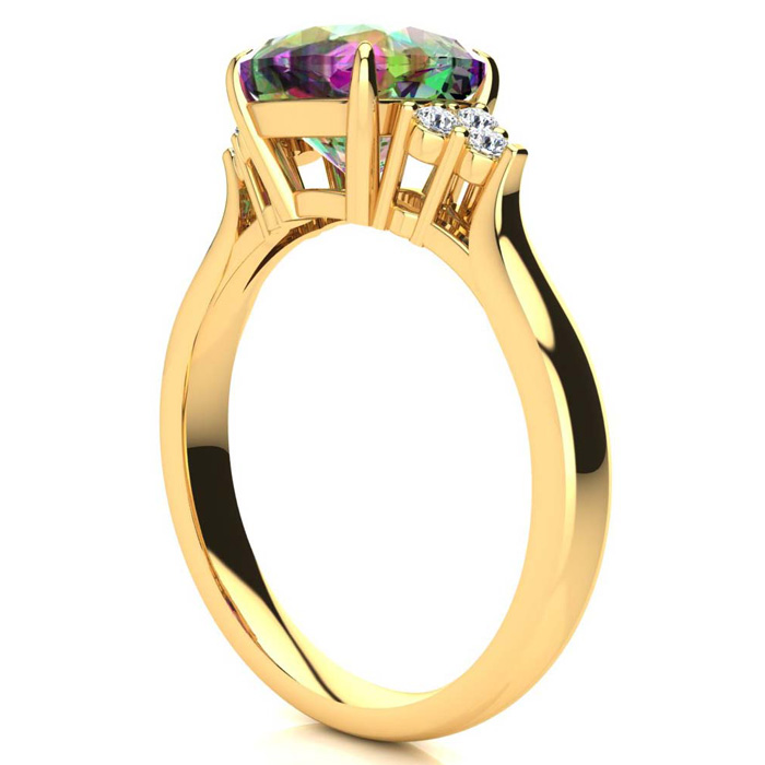 2-1/5 Carat Oval Shape Mystic Topaz Ring and Six Diamonds In 14 Karat Yellow Gold