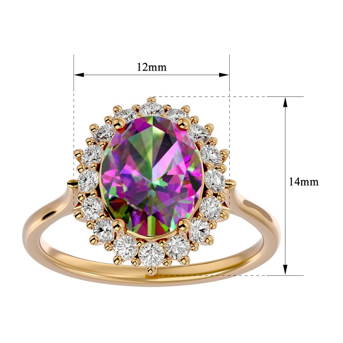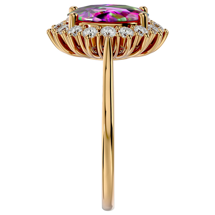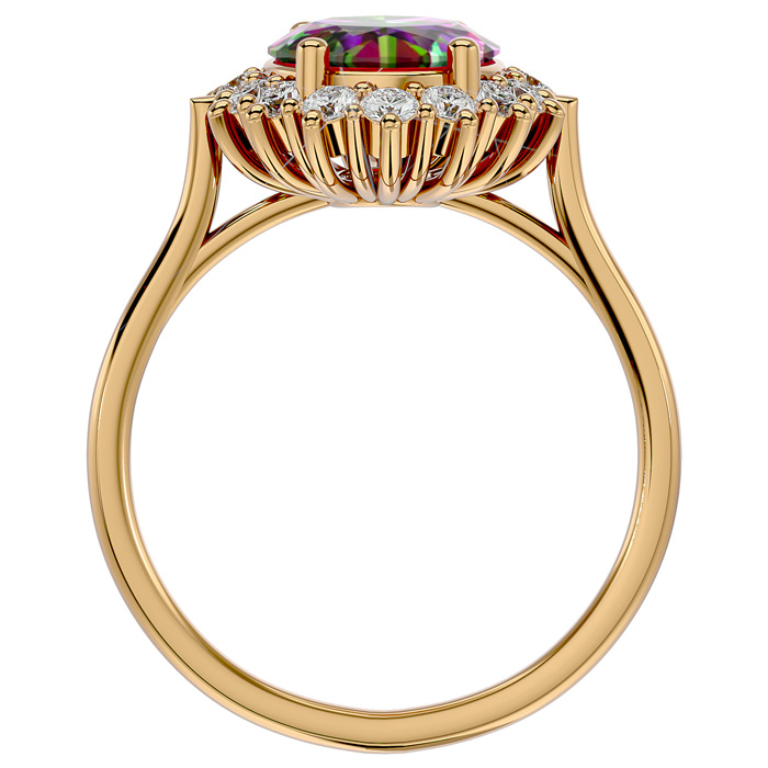 2-3/4 Carat Oval Shape Mystic Topaz Ring With Diamond Halo In 14 Karat Yellow Gold