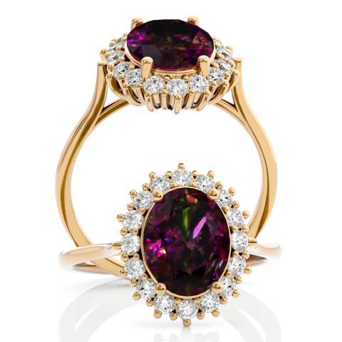 2-3/4 Carat Oval Shape Mystic Topaz Ring With Diamond Halo In 14 Karat Yellow Gold