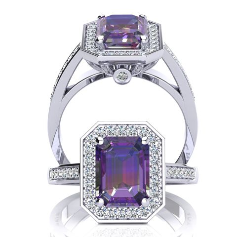 2 Carat Octagon Shape Mystic Topaz Ring With Diamond Halo In 14 Karat White Gold