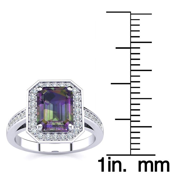 2 Carat Octagon Shape Mystic Topaz Ring With Diamond Halo In 14 Karat White Gold