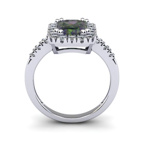 2 Carat Octagon Shape Mystic Topaz With Diamond Halo In 14 Karat White Gold