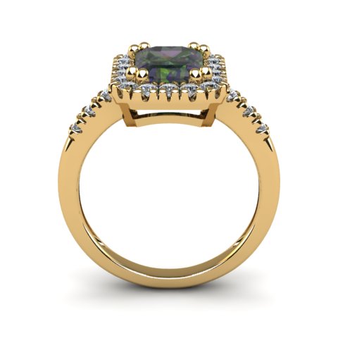 2 Carat Octagon Shape Mystic Topaz With Diamond Halo In 14 Karat Yellow Gold