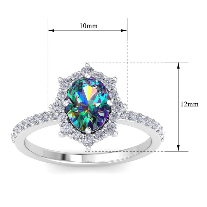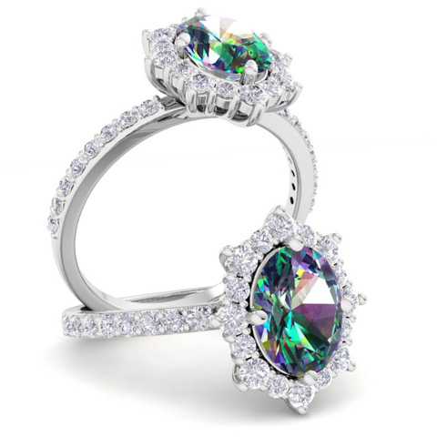 2 Carat Oval Shape Mystic Topaz Ring With Diamond Halo In 14 Karat White Gold