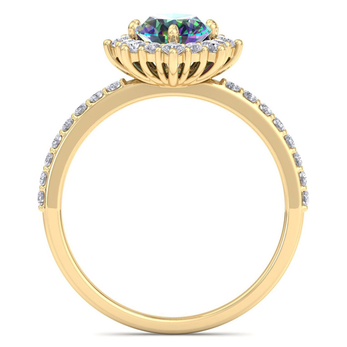 2 Carat Oval Shape Mystic Topaz Ring With Diamond Halo In 14 Karat Yellow Gold