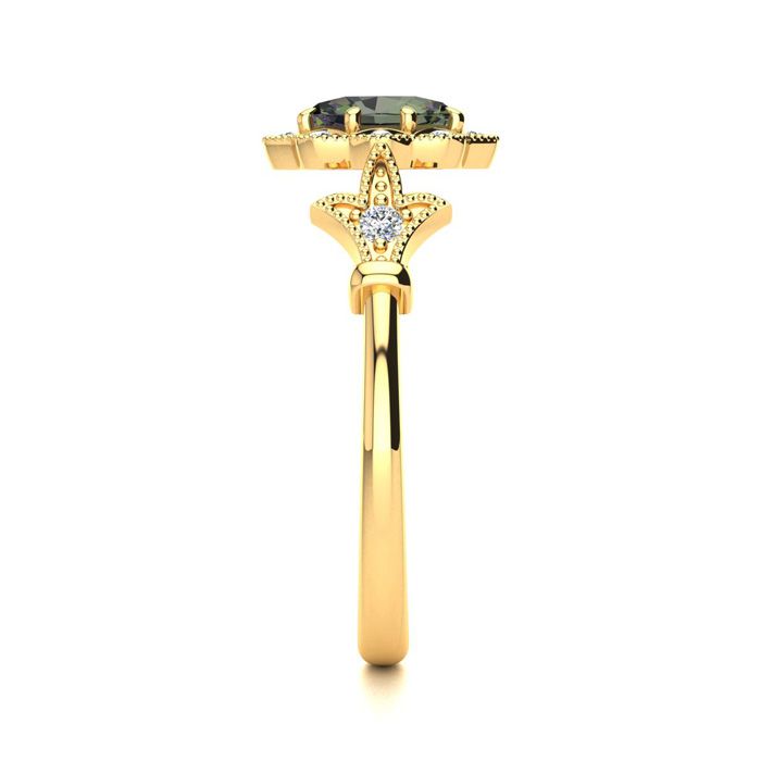 Retrograde Birthstones™ 3/4 Carat Oval Shape Mystic Topaz and Halo Diamond Vintage Ring In 14 Karat Yellow Gold