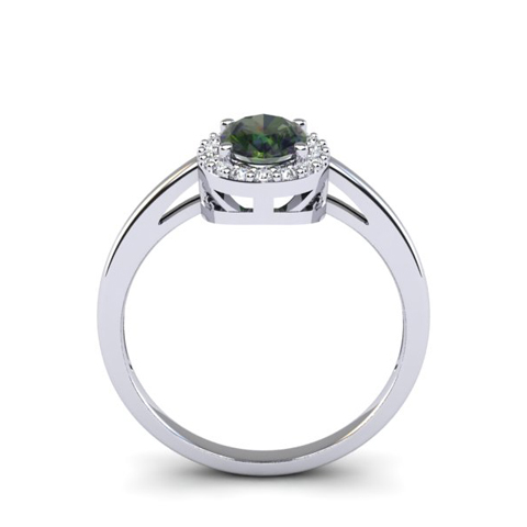 3/4 Carat Oval Shape Mystic Topaz Ring With Diamond Halo In 14 Karat White Gold