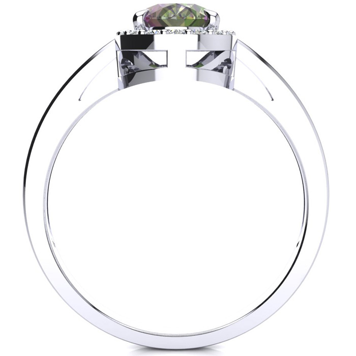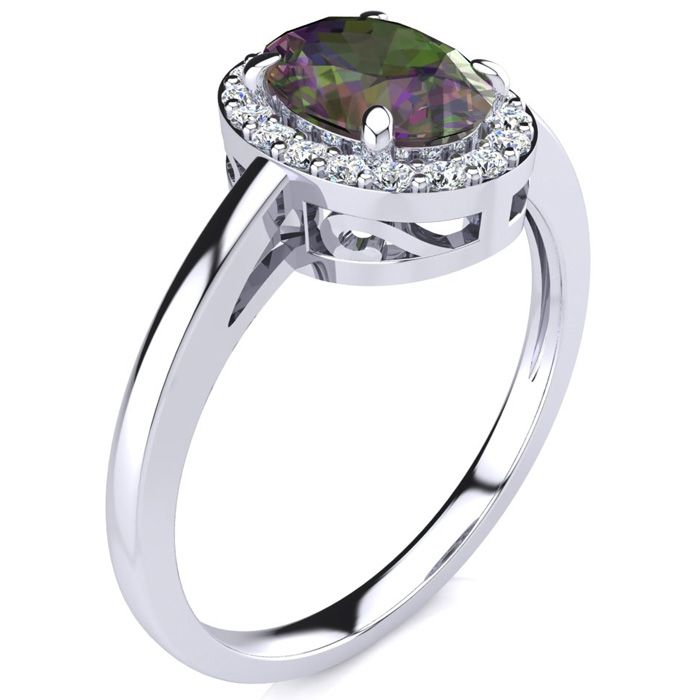 3/4 Carat Oval Shape Mystic Topaz Ring With Diamond Halo In 14 Karat White Gold