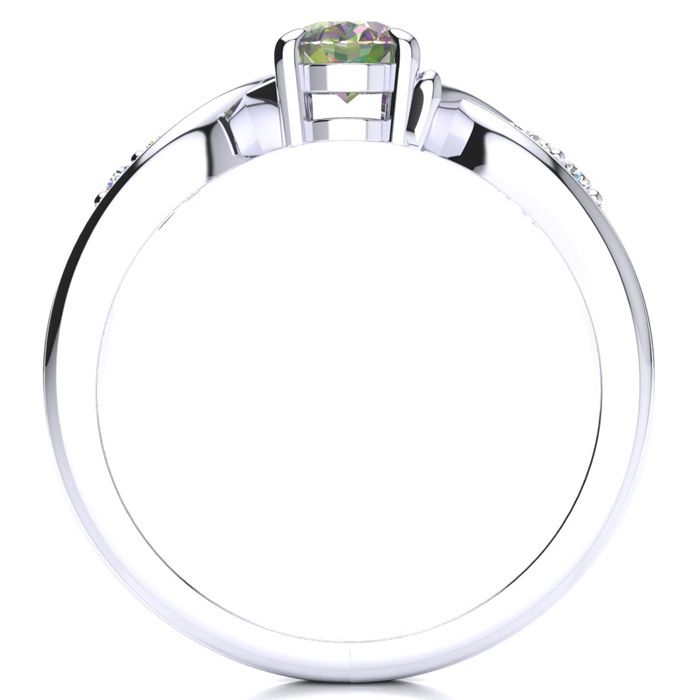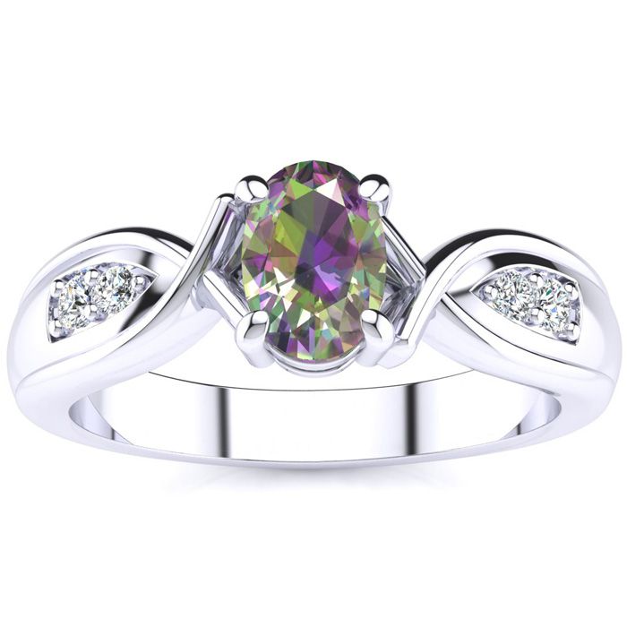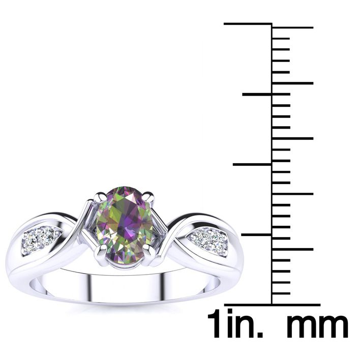 3/4 Carat Oval Shape Mystic Topaz Ring With Four Diamonds In 10 Karat White Gold