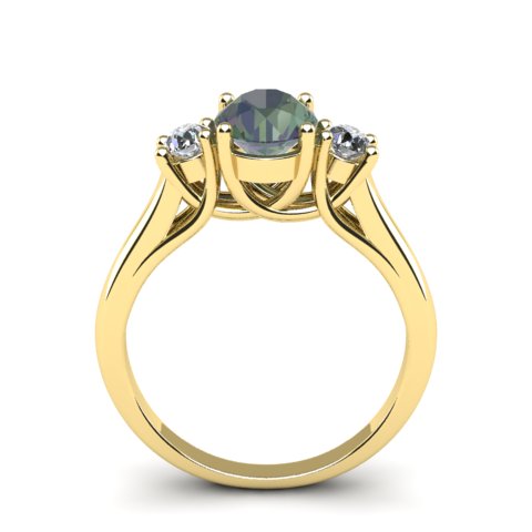 3/4 Carat Oval Shape Mystic Topaz Ring With Two Diamonds In 14 Karat Yellow Gold