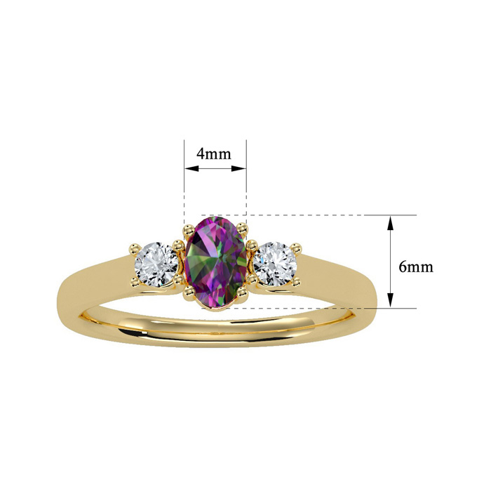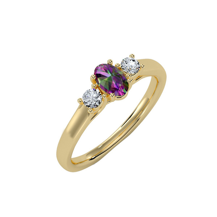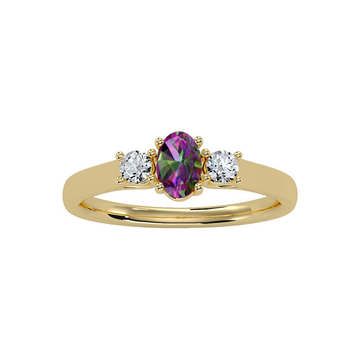 3/4 Carat Oval Shape Mystic Topaz Ring With Two Diamonds In 14 Karat Yellow Gold