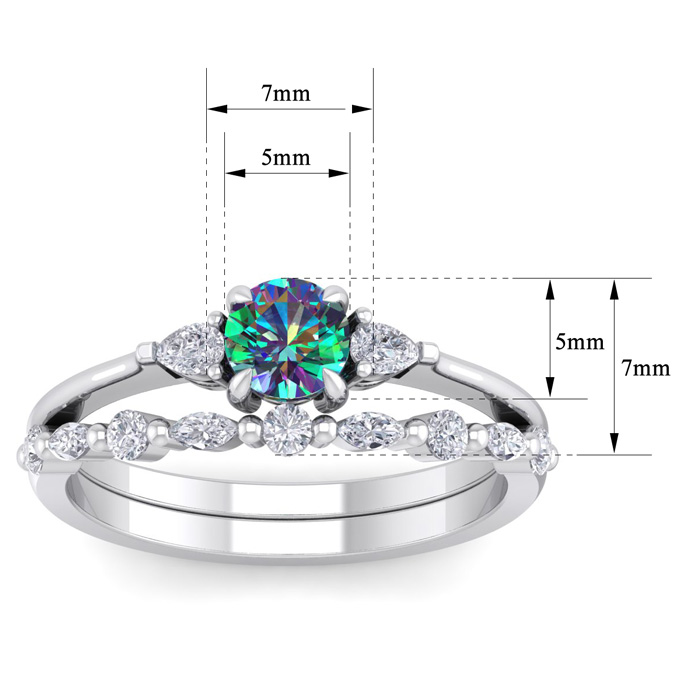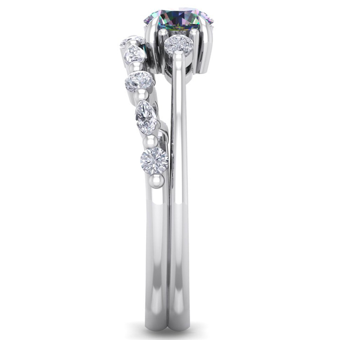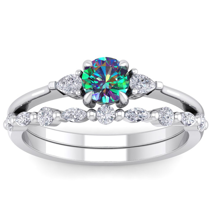 3/4 Carat Round Shape Mystic Topaz Ring and Diamond Band - Bridal Set In 14 Karat White Gold