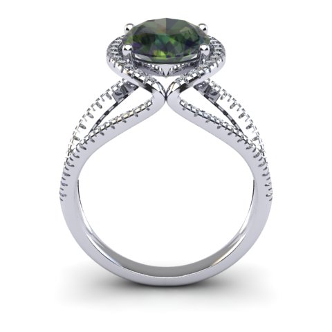 3 Carat Oval Shape Mystic Topaz Ring With Fancy Diamond Halo In 14 Karat White Gold