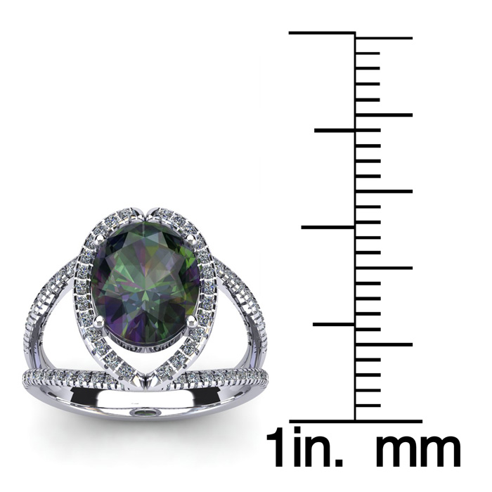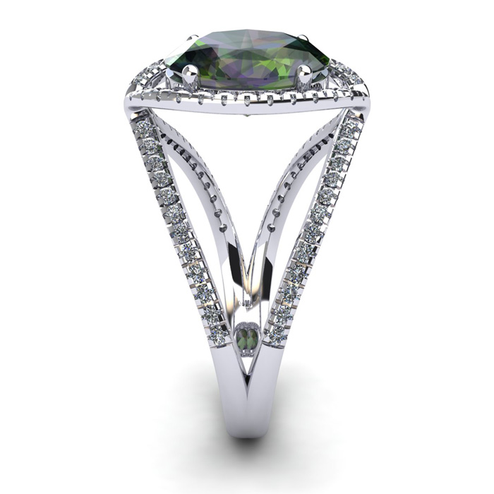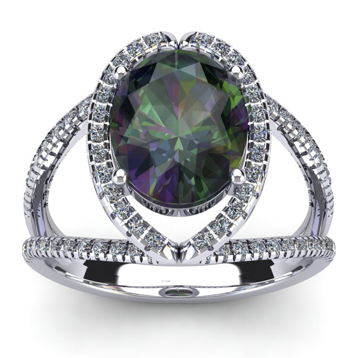 3 Carat Oval Shape Mystic Topaz Ring With Fancy Diamond Halo In 14 Karat White Gold