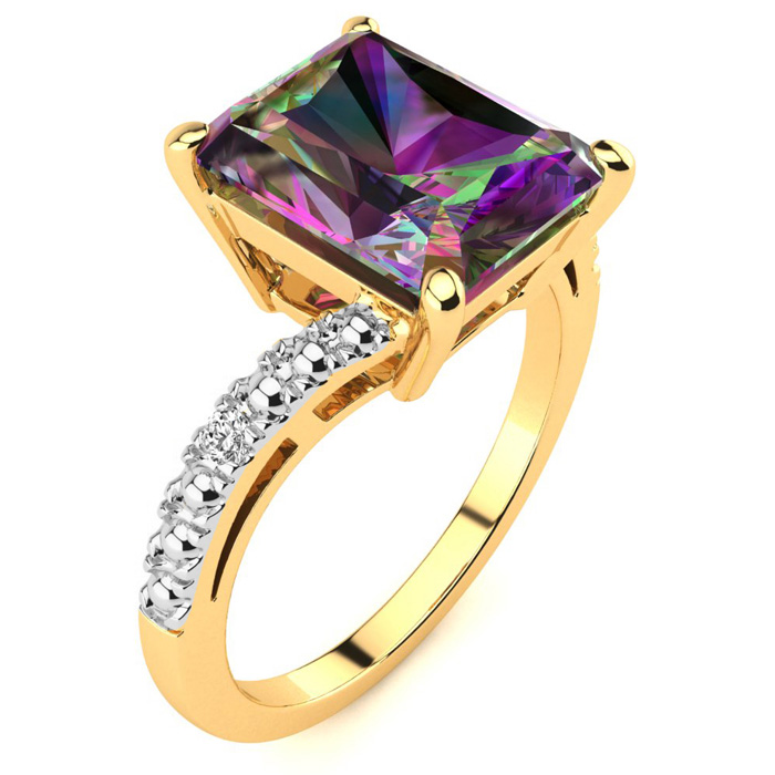 4 Carat Octagon Shape Mystic Topaz Ring With Diamonds In 10 Karat Yellow Gold