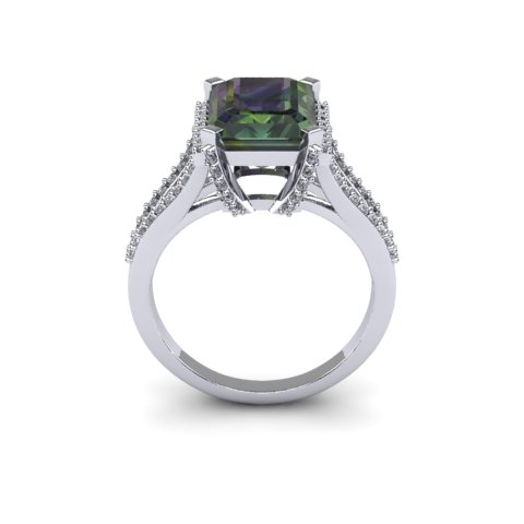 4 Carat Octoagon Shape Mystic Topaz Ring With Diamonds In 14 Karat White Gold