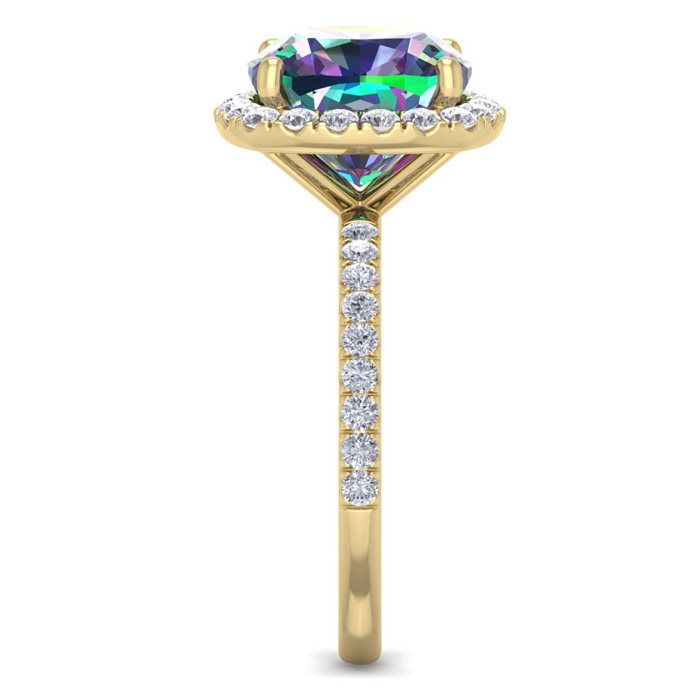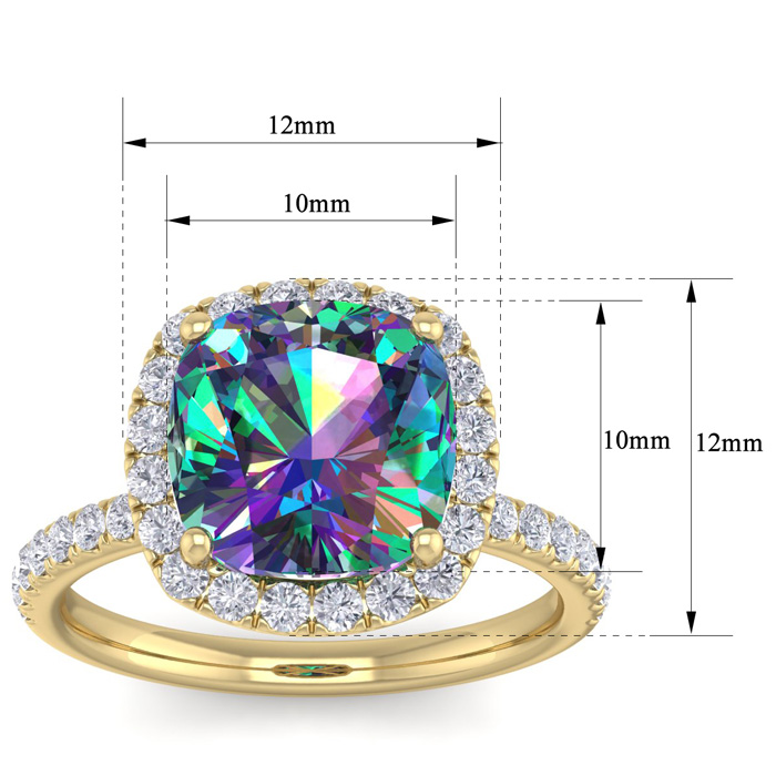 5-1/2 Carat Cushion Shape Mystic Topaz Ring With diamond Halo In 14 Karat Yellow Gold