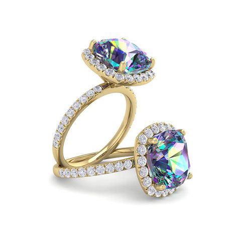 5-1/2 Carat Cushion Shape Mystic Topaz Ring With diamond Halo In 14 Karat Yellow Gold