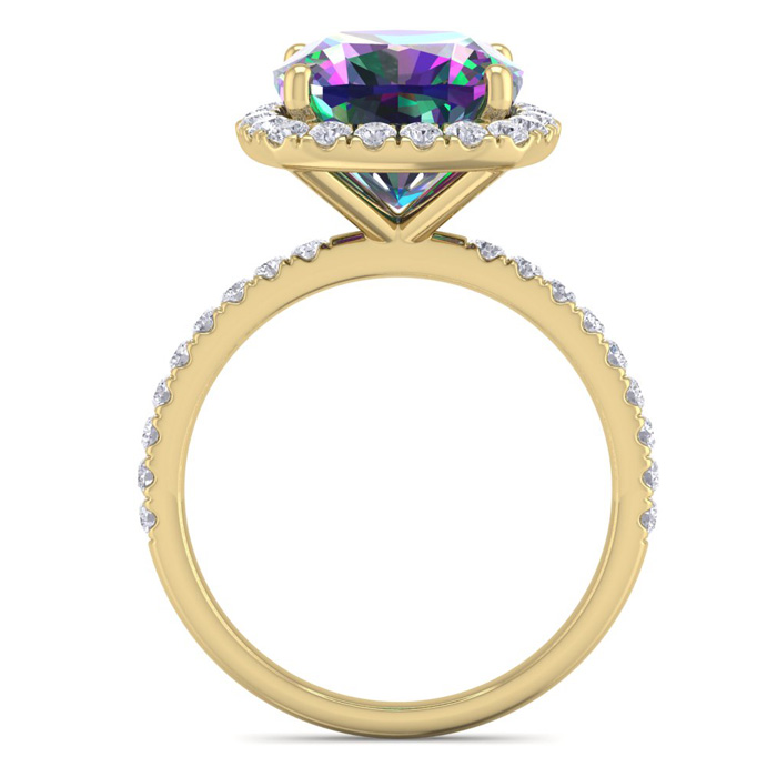 Retrograde Birthstones™ 5-1/2 Carat Cushion Shape Mystic Topaz Ring With diamond Halo In 14 Karat Yellow Gold