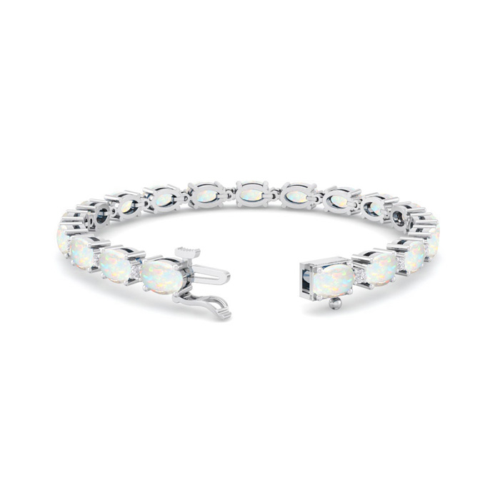 Opal Bracelet With 6 Carats of Oval Shape Opals and Diamonds In 14 Karat White Gold, 7 Inches