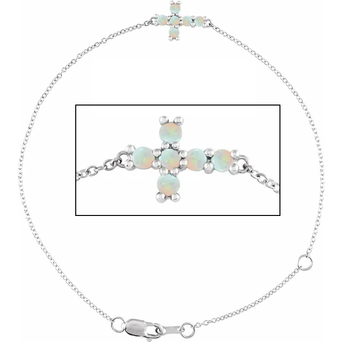 Opal Bracelet With Sideways Cross In Sterling Silver, 7 1/2 Inches